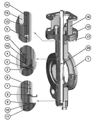 6.填料:蝶閥多層式PTFE設計