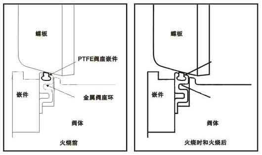 耐火閥座是考慮在火燒時需要有效關閉時使用的。是以金屬座圈鑲嵌PTFE, PTFE作為首道密封。當PTFE燒壞時,金屬座圈作為第二道密封進行有效的關閉。耐火閥座也適用于關鍵的或嚴峻的使用工況。帶耐火閥座的兩門按API607第4版和BS6755第二部分經過試驗并獲得認可。