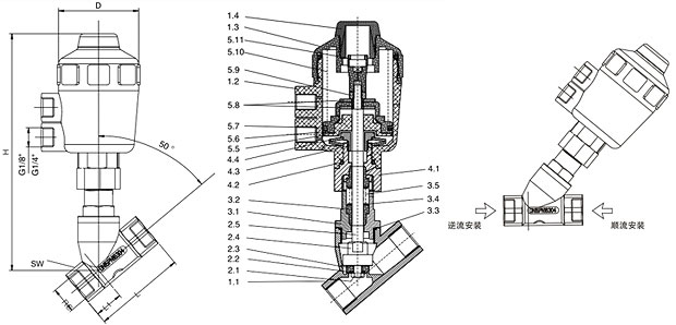 進口氣動角座閥技術參數