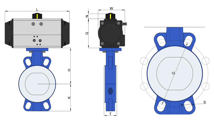 氣動(dòng)執(zhí)行器通過(guò)壓縮空氣提供動(dòng)力,驅(qū)動(dòng)閥桿帶動(dòng)閥板進(jìn)行精確的旋轉(zhuǎn)運(yùn)動(dòng),從而實(shí)現(xiàn)對(duì)介質(zhì)流量的有效控制。該蝶閥整體結(jié)構(gòu)緊湊、外觀精美,操作靈活便捷,在各種工況下均能穩(wěn)定可靠地運(yùn)行。