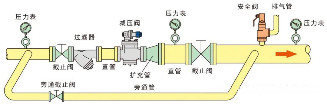 4、如需在減壓閥出口側安裝自動控制閥,需與減壓閥保持一定距離(調節型1米以上,開關型2米以上)。